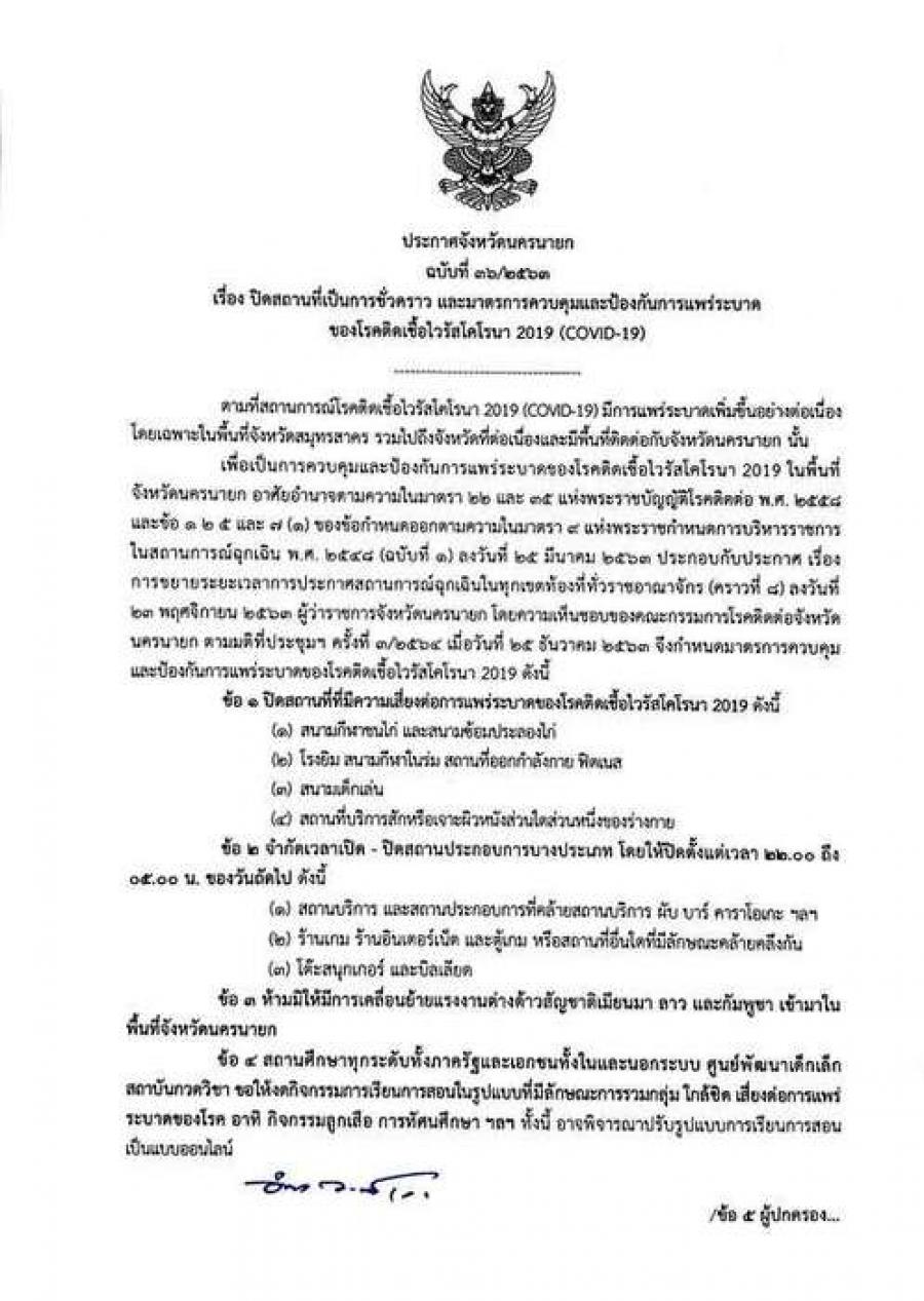 ประกาศมาตรการควบคุมและป้องกันการแพร่ระบาดของโรคติดเชื้อไวรัสโคโรนา(COVID-2019) S:0