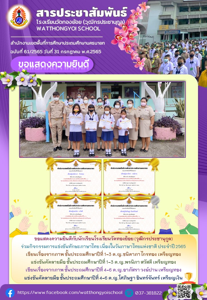 ขอแสดงความยินดีกับนักเรียนโรงเรียนวัดทองย้อย (วุฒิกรประชานุกูล)