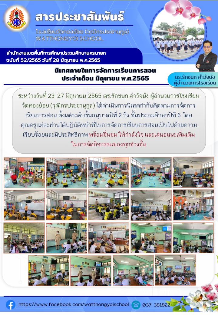 นิเทศภายในการจัดการเรียนการสอน ประจำเดือน มิถุนายน พ.ศ.2565